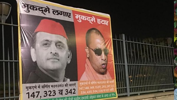 लखनऊ में अखिलेश बनाम सीएम योगी आदित्यनाथ के लगे होर्डिंग, लिखी गई ये बातें