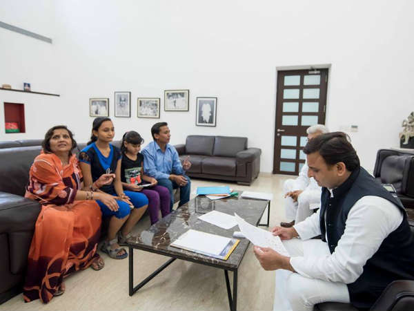 मुख्यमंत्री ने दोनों बेटियों से मुलाकात करके परिवार के बारे में जानकारी ली, इस मौके पर उन्होंने इन दोनों बेटियों की पढ़ाई के बारे में भी पूछा और इनके मामा को सरकारी नौकरी देने की घोषणा की है। साथ ही बच्चियों की पढ़ाई का बेहतर इंतजाम करने के भी निर्देश दिये हैं। इस मौके पर अखिलेश यादव ने इलाके के अधिकारयों को भी बुलाया था।