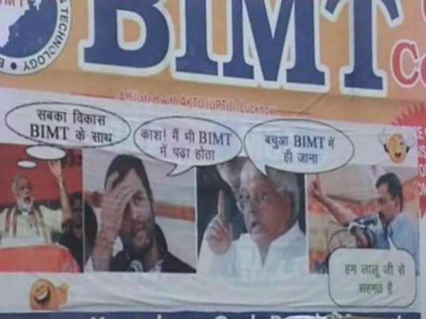 इसमें लिखा गया है कि सबका विकास बीआईएमटी के साथ, जबकि लालू की तस्वीर के उपर लिखा है बबुआ बीआईएमटी में ही जाना। पोस्टर में अरविंद केजरीवाल की तस्वीर के उपर लिखा है कि मैं लालू जी की बात से सहमत हूं। वहीं इस पूरे विवाद पर भाजपा के पूर्व प्रदेश अध्यक्ष लक्ष्मीकांत वाजपेयी ने कहा कि बिना किसी की मर्जी के किसी की तस्वीर नहीं इस्तेमाल की जा सकती है।