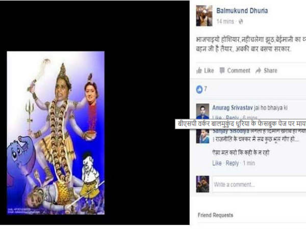 फेसबुक पर मायावती को दिखाया काली रूप में, हाथ में स्मृति ईरानी का सिर