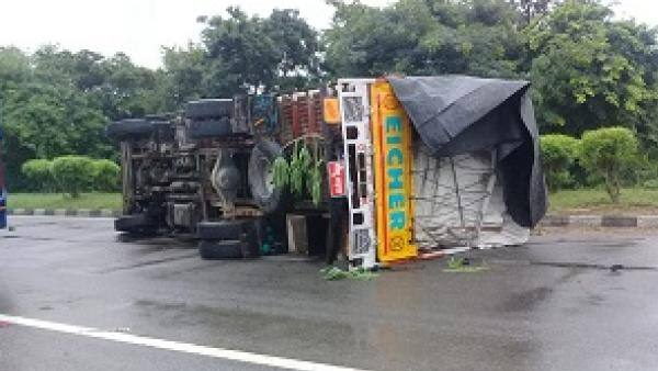अनिंयत्रित होकर वैन पर पलटा ट्रक