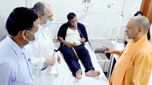 सीएम योगी घायलों से अस्पताल में की मुलाकात