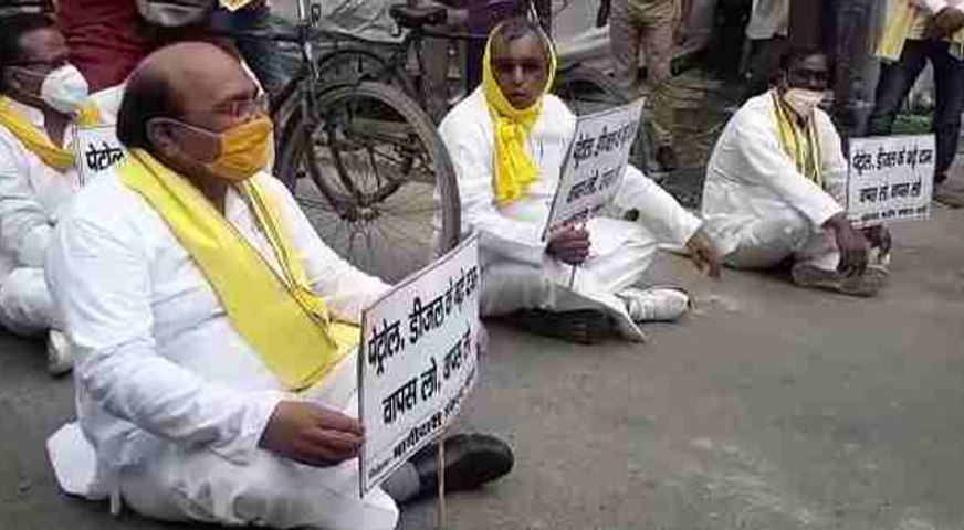पेट्रोल-डीजल वृद्धि के खिलाफ सड़कों पर उतरे ओम प्रकाश राजभर, पुलिस ने रोका तो...