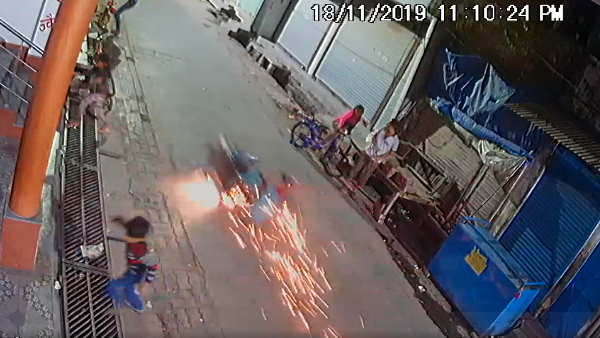 दरअसल, हुआ यूं कि रात के समय सूनी पड़ी रोड पर बच्चे बैडमिंटन खेल रहे थे। इसी बीच सड़क के छोर से बच्चों की तरफ आ रहा तेज रफ्तार बाइक सवार अचानक अनियंत्रित होकर पलट गया। बाइक सड़क पर पलटकर चिंगारियों छोड़ते हुए गोली की रफ्तार से बच्चों की तरफ बढ़ी। लेकिन गनीमत रही कि समय रहते बच्चे भागकर सड़क के किनारे दुबक गए।
