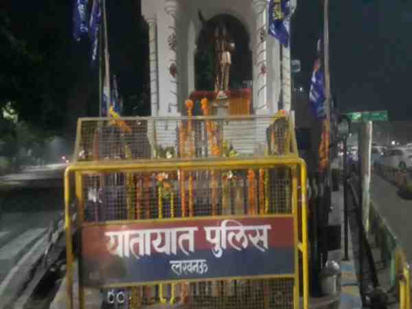 लखनऊ: ताले में बंद अंबेडकर की मूर्ति पर गेट फांदकर चढ़ाया फूल, दलित छात्रों ने की नारेबाजी