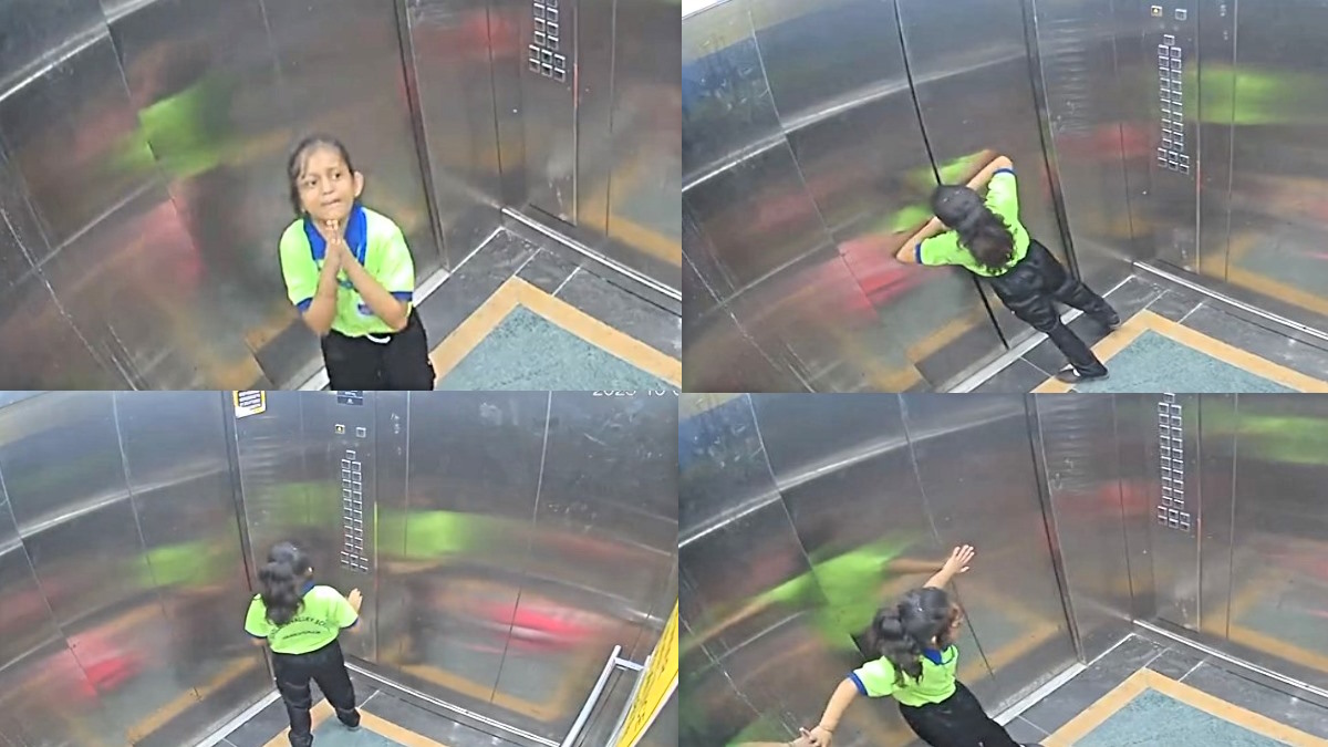 लिफ्ट में फंस गई मासूम बच्ची, कभी चिल्लाई तो कभी कैमरे के आगे हाथ जोड़े, विचलित कर देगा ये Video