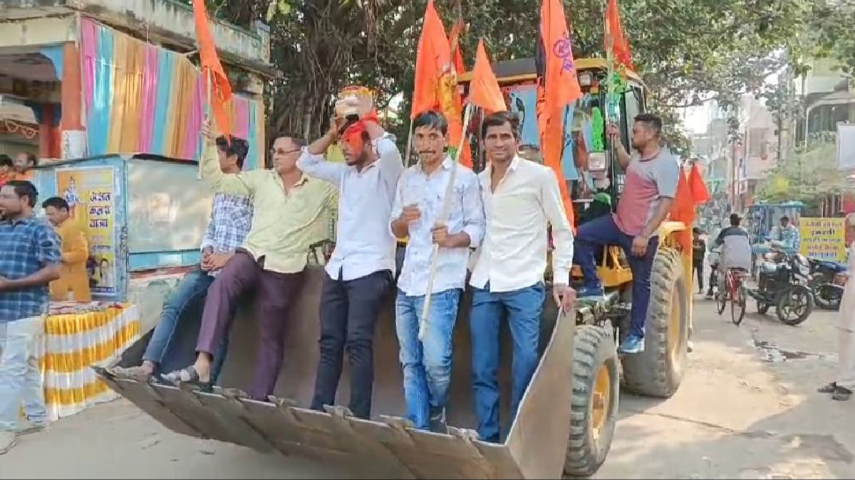 Ram Mandir: देवास में बुलडोजर से निकाली अक्षत कलश यात्रा, श्री राम के जयकारों से गूंजी बगाली