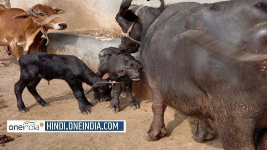 OMG : 7 दिन के अंतराल में भैंस के दो बार हुआ प्रसव, देखने उमड़े लोग, चिकित्सक भी चकित, देखें VIDEO