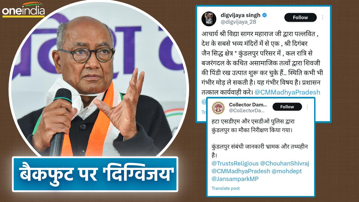 Digvijay Singh: दमोह जिले के पटेरा स्थित दिगंबर जैन सिद्ध क्षेत्र कुंडलपुर परिसर में शनिवार रात बजरंग दल के कथित असामाजिक तत्वों द्वारा उत्पात मचाए जाने की खबर का रविवार को कुंडलपुर कमेटी, बजरंग दल जिला प्रशासन ने खंडन किया है। इनके खंडन के बाद पूर्व मुख्यमंत्री दिग्विजय सिंह ने अपना ट्वीट हटा लिया है।