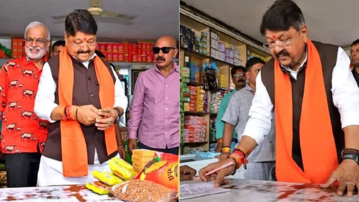 Indore: धनतेरस पर कैलाश विजयवर्गीय ने संभाली किराना दुकान, खुद तौला ग्राहकों का सामान