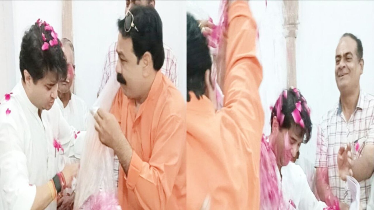 Video: कार्यकर्ता के स्वागत के आगे बेबस हुए सिंधिया,मना करते रहे लेकिन BJP नेता बरसाता रहा गुलाब की पंखुड़ियां