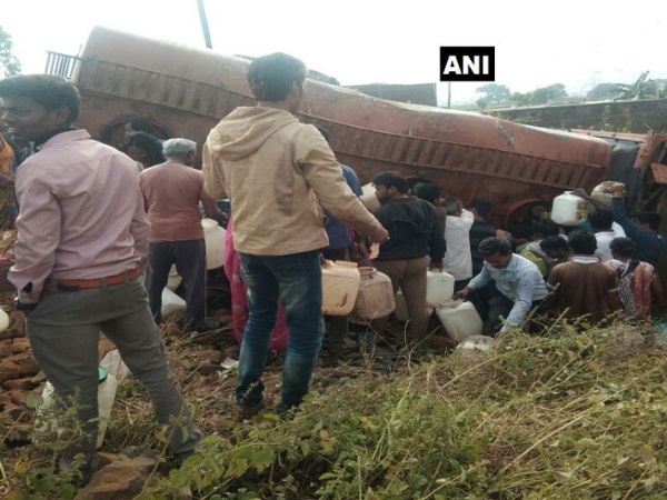 VIDEO: केरोसीन से भरा टैंकर पलटा, तेल लूटने की मची रही होड़