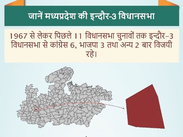 इंदौर -3 विधानसभा पर 1967 में पहली बार चुनाव हुआ था। इस सीट पर कांग्रेस 6 बार, बीजेपी 3 बार और 2 बार अन्य दल के प्रत्याशी विजयी रहे। इस विधानसभा की कुल आबादी 406836 लाख है। इसमें से 84 फीसदी आबादी हिंदू, 13 फीसदी मुस्लिम और 2 फीसदी आबादी जैन सुमदाय से है। इस विधानसभा की 100 प्रतिशत आबादी शहरी है। यहां पर 2018 के चुनाव में 187138 लाख लोग वोटिंग करेंगे।