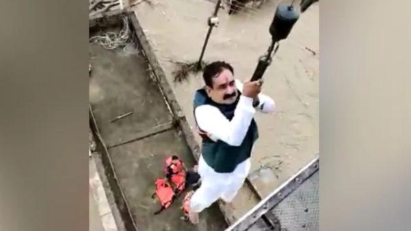 VIDEO: बाढ़ पीड़ितों की मदद करने गए मंत्री नरोत्तम मिश्रा खुद ही फंसे, सेना ने किया एयरलिफ्ट