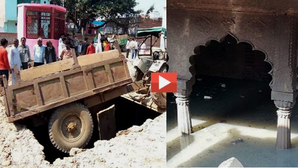 जमीन में धंसी ट्रैक्टर ट्रॉली तो नीचे मिला 300 साल पुराना महल, खजाने की भी उम्मीद, देखें वीडियो