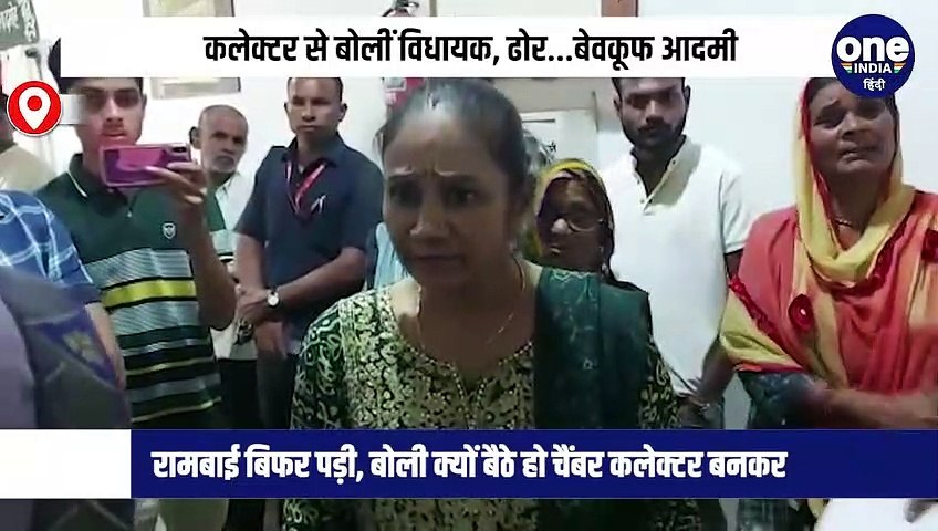 रामबाई गुस्से में बोली मुझसे नियमों की बात आप मत करो। यदि ये कागज सही हैं, क्या यह पात्रता नहीं है, पात्रता क्या होती है। 35 साल से 15 साल से पात्रता चैक नहीं करा पाए। आप शिविर किसलिए लगाए जा रहे हैं। कौन देखेगा इनको। इनकी पात्रता है तो ये कहां जाएं, कहां गए आपके अधिकारी। कलेक्टर इस दौरान कहते रहे कि मैं पात्रता चेक करा लेता हूं। जो भी पात्र है, उसे लाभ दिया जाएगा। कलेक्टर ने जब कहा कि मैं चेक करा लूंगा तो रामबाई गुस्से में चिल्लाते हुए चीखकर बोली- अरे आंखे फूट गईं क्या तुम्हारी और तुम्हारे कर्मचारियों की, अकल ही नहीं है, दो रुपए कि, आंखे फूट गईं क्या, चेक कराने की बात करते हो... बेवकूफ आदमी, ढोर आदमी, ये कलेक्टर है या बेवकूफ है, अकल ही नहीं है, मुझे डायलाग मार रहे हो। रामबाई यहीं नहीं रुकी और कलेक्टर के चैंबर में जाने के बावजूद भी जोर-जोर से मीडिया के कैमरों के सामने चिल्लाती रहीं।