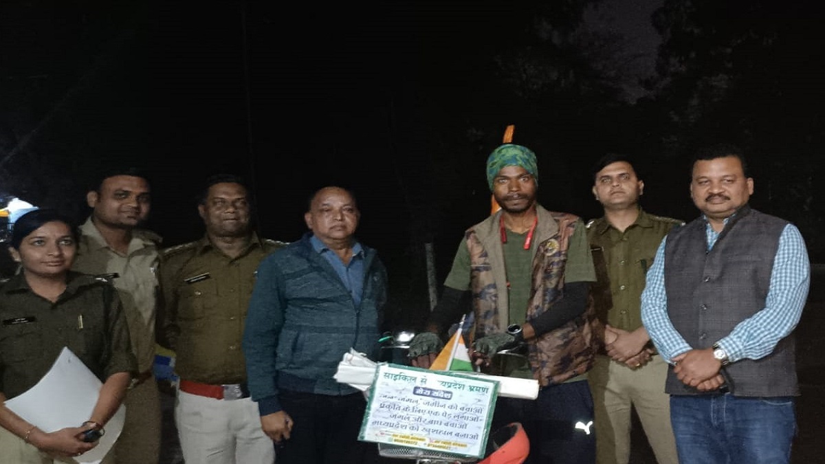 देश-दुनिया में बाघों और जंगलों की सुरक्षा बरकरार रखने जागरुकता का संदेश लेकर आदिवासी युवा रोहित सिरसाम साइकिल यात्रा पर निकला हुआ है। जो शनिवार की शाम दमोह पहुंचा। जिसका स्वागत डीएफओ एमएस उइके के साथ अन्य अधिकारियों ने किया।