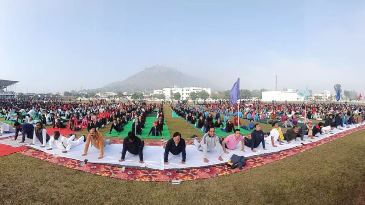 राष्ट्रीय युवा दिवस: मध्य प्रदेश के रायसेन में तीन हजार बच्चों ने किया सामूहिक सूर्य नमस्कार
