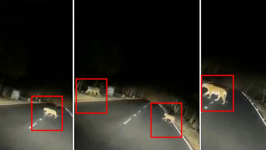 सोचिए आप रात के घुप्प अंधेरे में सड़क पर तेज गति से चले जा रहे हैं और ठीक सामने एकाध नहीं बल्कि पांच टाइगर नजर आएं तो क्या हालत होगी? ऐसा ही कुछ दृश्य बीते रोज छतरपुर-पन्ना हाईवे पर नजर आया। एक कार चालक को हैडलाइट की रोशनी में सड़क पर एक बाघ खड़ा नजर आया तो उसने तत्काल कार के ब्रेक लगाए। सड़क पर एक भारी-भरकम बाघ गुर्राते हुए सड़क के दोनों तरफ बड़े गौर से देख रहा था। कार में सवार लोगों ने इसका वीडियो बनाकर सोशल मीडिया पर वायरल कर दिया।