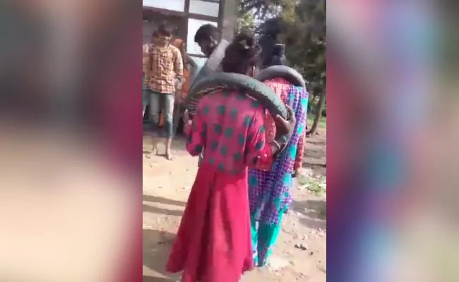 मध्य प्रदेश : घर से भागे प्रेमी जोड़े को दी सजा, गले में टायर डालकर करवाया डांस, वीडियो वायरल