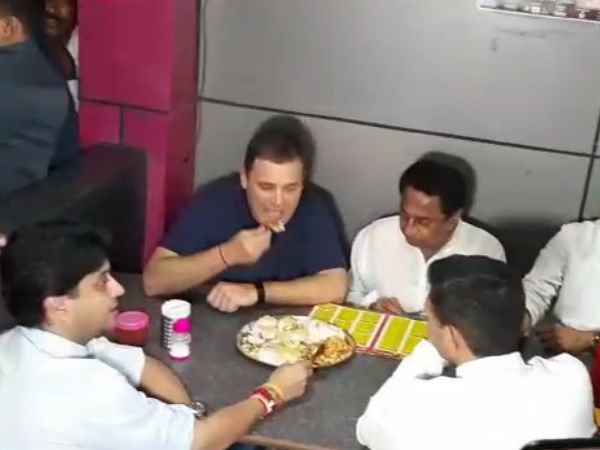 भोपाल। राहुल गांधी दो दिनों के लिए मध्य प्रदेश के चुनावी दौरे पर है। इस दौरान लोगों को अपनी तरफ आकर्षित करने के लिए ना सिर्फ रैली कर रहे है बल्कि, अपने जायकों के लिए प्रसिद्ध इंदौर के जायकों का भी लुत्फ उठा रहे है। बता दें कि इंदौर में सभा और रोड-शो करने के बाद फ्री हुए तो होटल से सीधे इंदौर की 56 दुकान पर पहुंच गए। राहुल गांधी नीली टी-शर्ट में सैर सपाटे के हिसाब से यहां के खान-पान का लुत्फ उठाने पहुंचे। इस दौरान उनके साथ सांसद सिंधिया और कमलनाथ और जीतू पटवारी भी मौजूद रहे।