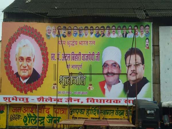 अटल जी के निधन पर भाजपा विधायक ने शहरभर में लगाए बैनर, गलतियों की भरमार