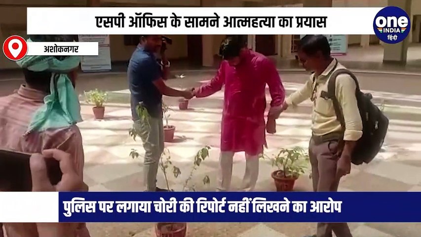 अशोकनगर में कौमेश विमल नाम के एक युवक ने एसपी ऑफिस के सामने की खुदकुशी की कोशिश, मौके पर मौजूद लोगों ने बचाया