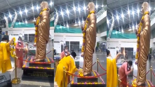 प्रदेश की सरकार कोरोना को रोकने के लिए क्या-क्या कर रही है ये हम सब जानते है, लेकिन पर्यटन मंत्री उषा ठाकुर ने इंदौर एयरपोर्ट पर बिना मास्क लगाए देवी अहिल्या बाई होल्कर की प्रतिमा के सामने कोरोना को खत्म करने के लिए पूजा की। उन्होंने एयरपोर्ट स्टाफ के साथ पहले मूर्ति के चरणों पर माला चढ़ाई फिर दीप जलाकर कोरोना से छुटकारे पाने की प्रार्थना की।