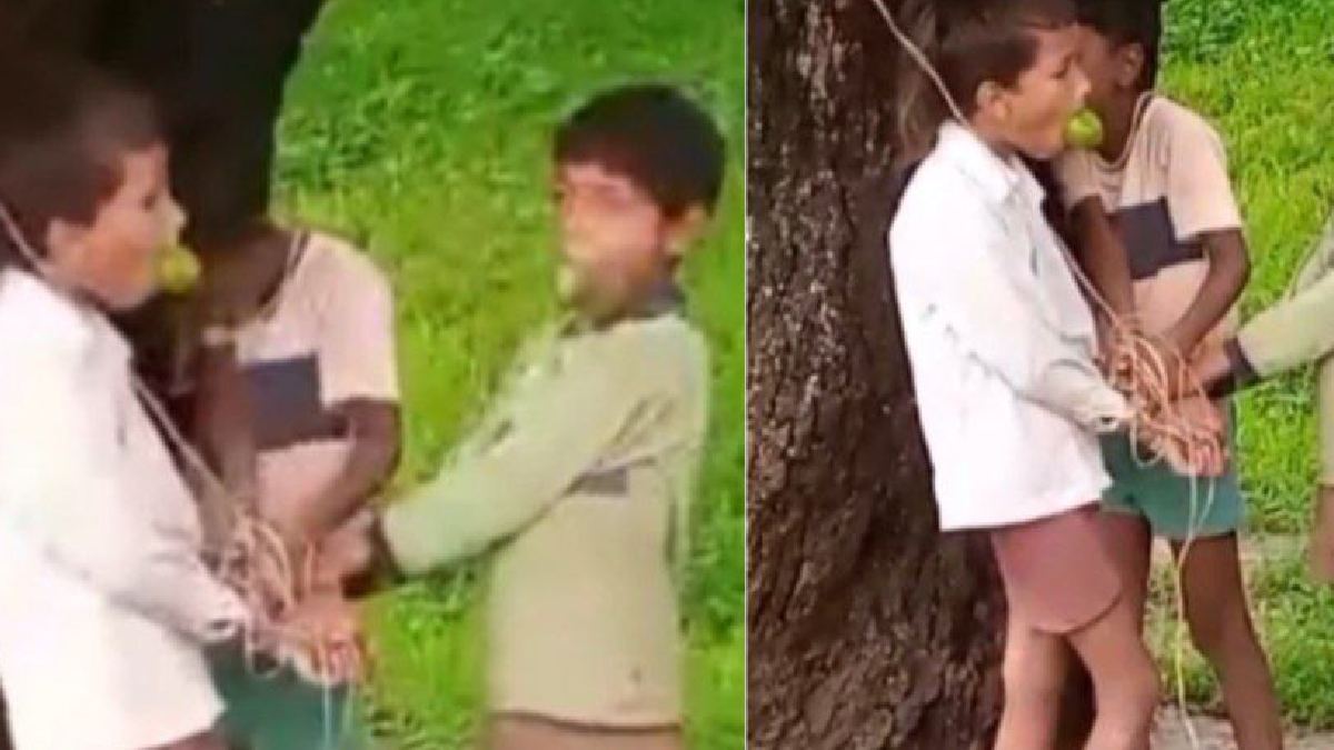 Maharajganj News: उत्तर प्रदेश के महराजगंज जिले से हैरान और शर्मशार करने वाली खबर सामने आई है। समाज में दरिंदे भी बसते हैं यह इसका सीधा उदाहरण है। दरअसल इस खबर में तालिबानी अंदाज नजर आ रहा है। तीन बच्चो को रस्सी में बांध दिया जाता है और फिर उनके मुंह में आम ठूस दिया जाता है। आइए पूरा मामला जानते है।