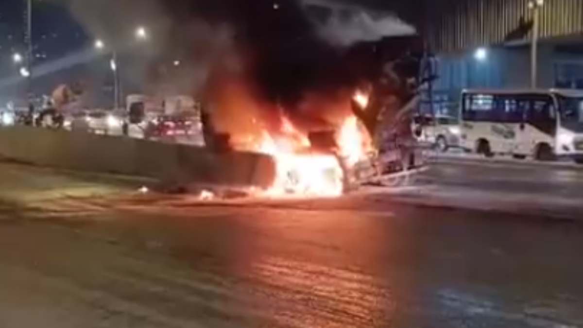 मुंबई: बीच सड़क पर धू-घूकर जलने लगा ट्रक, चलती गाड़ी में आग लगने से मचा हड़कंप, Video