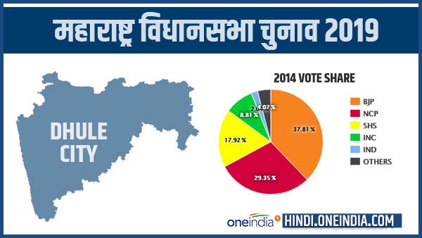 महाराष्ट्र के धुले लोकसभा क्षेत्र के अंतर्गत 6 विधानसभा सीटें आती हैं। इनमें धुले रूरल, धुले सिटी, सिंदखेड़ा, मालेगांव सेंट्रल, मालेगांव आउटर और बगलान शामिल हैं। 1978 से अब तक हुए विधानसभा चुनावों में धुले सिटी की सीट पर शिवसेना ने 4 बार, जननायक जनता पार्टी ने 2 बार जबकि कांग्रेस-बीजेपी ने 1-1 बार जीत दर्ज की है। 2014 के विधानसभा चुनाव में अनिल अन्ना गोटे को 57,780 वोट मिले थे जबकि एनसीपी उम्मीदवार कदम्बन्दे राजवर्धन रघुजीराव को 44,852 वोट मिले थे। जबकि इस सीट पर शिवसेना तीसरे स्थान पर रही थी। शिवसेना के उम्मीदवार सुभाष देवरे को 27,379 वोट हासिल हुए थे। इस सीट पर कांग्रेस का प्रदर्शन बेहद खराब रहा था और पार्टी 13,470 वोटों के साथ चौथे स्थान पर रही थी।