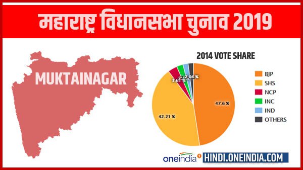 2014 के विधानसभा चुनाव में इस सीट पर बीजेपी को 46.68 फीसदी वोट मिले थे जबकि शिवसेना के उम्मीदवार चंद्रकांत पाटिल को 41.39 फीसदी वोट मिले थे। वहीं, एनसीपी को 3.55 फीसदी और कांग्रेस के खाते में केवल 2.45 फीसदी वोट आए थे। 2014 में मुक्ताईनगर विधानसभा सीट पर कुल 1,83,527 मतदाताओं ने अपने मताधिकार का प्रयोग किया था और इस सीट पर वोटिंग प्रतिशत 69.47 था।