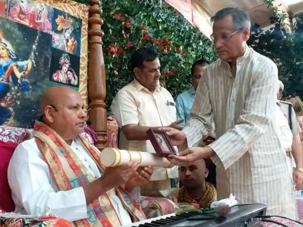 Mathura news, मथुरा। ब्रज क्षेत्र में गौसेवा के लिए कार्य करने वाले संत रमेश बाबा को ब्रजतीर्थ विकास परिषद के उपाध्यक्ष और जिलाधिकारी ने बरसाना पहुंचकर पद्मश्री भेंट किया। बता दें कि बाबा को यह सम्मान हाल ही में राष्ट्रपति रामनाथ कोंविद द्वारा दिया गया था, लेकिन संत रमेश बाबा के ब्रज से बाहर न जाने के कारण उन्हें बरसाना स्थित उनके आश्रम रसमंडप पर ही भेंट किया गया।