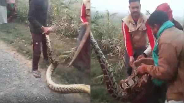 दरअसल गांव का रहने वाला एक व्यक्ति मंगलवार को सायं काल गांव में स्थित एक गन्ने के खेत में शौच करने के लिए गया था। गन्ने के खेत में गन्ने के पत्तों खर खराने की आवाज को सुनकर उसे लगा कि सियार या कोई अन्य जानवर है। वह जब नजदीक जाकर देखा तो हैरान रह गया। गन्ने के खेत से बाहर निकलने के बाद उसने गांव के लोगों को गन्ने की खेत में अजगर होने की सूचना दी। देखते ही देखते काफी संख्या में ग्रामीण एकत्र हो गए उसके बाद वन विभाग को सूचना दिया गया। वन कर्मी मौके पर पहुंचे और अजगर के बच्चे को पकड़कर बोरे में भर दिए। उसके बाद वन कर्मी अजगर के बच्चे को जंगल में छोड़ने के लिए लेकर चले गए।