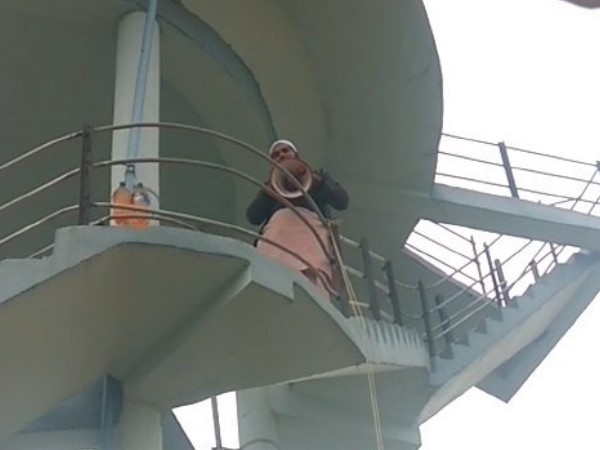 गौहत्या रोकने को लेकर टंकी पर चढ़ा मुस्लिम युवक, हाथ में पेट्रोल की बोतल