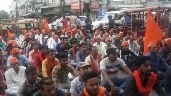 मुरादाबाद: सड़क पर नमाज के विरोध में बजरंग दल ने हाईवे पर पढ़ी हनुमान चालीसा, लगा लंबा जाम