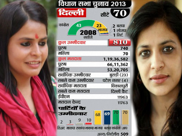 दिल्ली के चुनाव पर एक नजर डालते हुए आपको बता दें कि दिल्ली में मतदाताओं की कुल संख्या लगभग 1.20 करोड़ है जिसमें पुरुष मतदाता 66,11,362 लाख और महिला मतदाता 53,20,143 लाख है। दिल्ली में कुल विधानसभा सीटें 70 हैं और कुल पोलिंग बूथ 11992 है। तो आईए अब उन चेहरों के बारे में बात करते हैं जिसने दिल्ली चुनाव को राजनीतिक हाई वोल्टेज के साथ ही साथ ग्लैमरस भी बना दिया है।