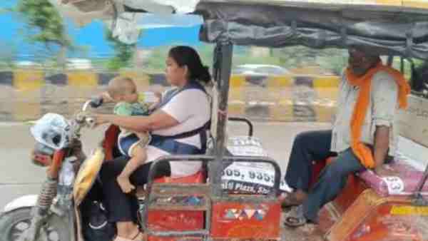 नोएडा, 25 सितंबर: मां अपने बच्चों के लिए पूरी दुनिया से लड़ सकती है। इसलिए मां को भगवान से भी ऊंचा दर्जा दिया गया है। मां की शक्ति का एक अद्भुत नाजार उत्तर प्रदेश के नोएडा जिले की सड़कों पर देखने को मिला। दरअसल, यहां एक महिला अपने बच्चे को गोद में बैठा कर ई-रिक्शा चलाती हुई नजर आई। इस महिला का नाम चंचल शर्मा बताया जा रहा है। जो अपने बच्चे के लिए इस तरह का जीवन जी रही है, उसके बारे में जानकर सभी लोग उसके फैन हो गए हैं।