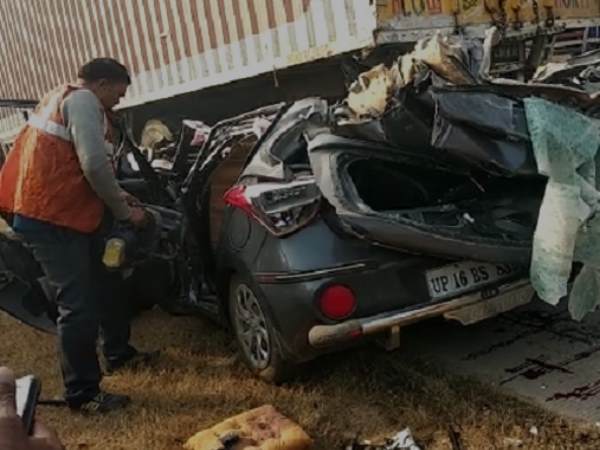 नोएडा। ग्रेटर नोएडा के यमुना एक्सप्रेसवे पर एक तेज रफ्तार कार पीछे से कन्टेनर में जा घुसी। इस हादसे में कार में सवार तीन लोगों की मौके पर ही मौत हो गई जबकि एक महिला गंभीर रूप से घायल हो गई। उसकी हालत भी चिंताजनक बनी हुई है। हादसा इतना जबरदस्त था कि कार के पूरी तरह से परखच्चे उड़ गए। मौके पर पहुंची पुलिस और हाईवे टोलकर्मियों की टीम ने कार में फंसे शवों को कड़ी मशक्कत के बाद बाहर निकाला।