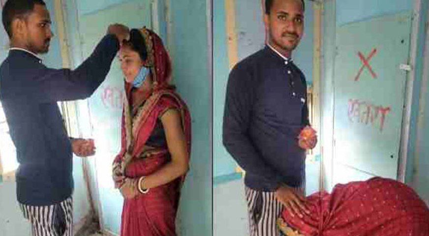 शादीशुदा महिला के प्रेमी आशु कुमार ने चलती ट्रेन के टॉयलेट के सामने उससे शादी रचा ली और मांग में सिंदूर भी भर दिया। कुछ लोगों ने इस घटना को अपने कैमरे कैद कर लिया और फोटो सोशल मीडिया पर शेयर कर दी। इसके बाद से यह तस्वीरे जमकर वायरल हो रही है। इस शादी पर लोग कई तरह की प्रतिक्रियाएं दे रहे हैं।