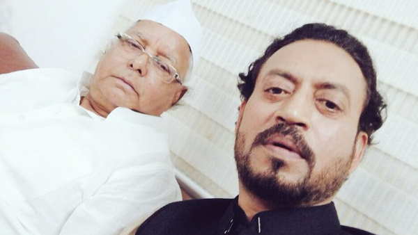 साल 2016 के सात जुलाई को इरफान अपनी फिल्म 'मदारी' के प्रमोशन के लिए पटना आए थे। तब वह अपने रियल लाइफ हीरो लालू प्रसाद यादव से मिलने उनके आवास पर गए थे। इस दौरान इरफान ने लालू प्रसाद यादव से मुलाकात की और उनके साथ एक 'बवाल' सेल्फी भी ली थी। ऐसा खुद इरफान ने कहा था। इरफान ने उस मुलाकात की सेल्फी ट्विटर पर शेयर व लालू प्रसाद यादव को टैग करते हुए लिखा था, ''बवाल बिहार में, बवाल लोगों के साथ, बवाल सेल्फी।''