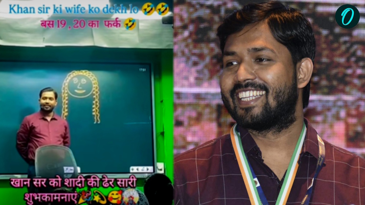 हल्के-फुल्के अंदाज में पढ़ाने के लिए मशहूर खान सर जब अपनी शादी की घोषणा कर रहे थे, तो छात्रों ने उनसे पत्नी की फोटो दिखाने की जिद कर दी। इस पर उन्होंने खुद बोर्ड पर हाथ से एक तस्वीर बनाई और हंसते हुए बोले-"वो ऐसी दिखती हैं।" बता दें कि खान सर की पत्नी का नाम AS खान बताया जा रहा है।