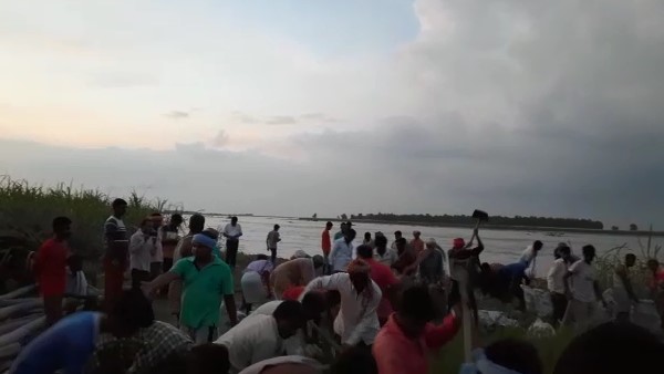 पीलीभीत। उत्तर प्रदेश में शारदा नदी का जल स्तर घटते ही कटान जोरों पर है। इसकी वजह से सैकड़ों एकड़ भूमि ढह चुकी है। साथ ही कई घर-मकान बह गए हैं। स्थानीय लोगों की सूचना पर प्रशासन के आलाधिकारी आधी रात को गांव राहुल नगर पहुंचे। उन्होंने देखा कि गांववाले जनटेटर चलवाकर कटान रोकने का प्रयास कर रहे हैं। कुछ घबराए लोग तो घरों से पलायन भी करने लगे हैं। यह इलाका बाढ़ की वजह से भू-कटान होने लगी। नदी के आस-पास के गांवों में अफरा-तफरी मची हुई है। भू-कटान को देखते हुये ग्रामीण गांव से दूसरे सुरक्षित स्थानों पर जा रहे हैं। प्रशासनिक अधिकारियों की ओर से रात्रि में कैम्प लगाकर भू-कटान को रोकने एवं बचाव कार्य शुरू किए जाने का काम शुरू हुआ।