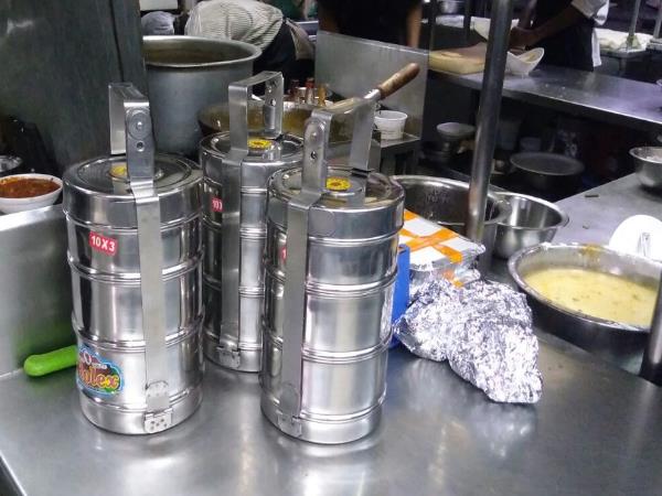 होटल में फोन करके खाने का ऑर्डर देने पर ग्राहकों को घर में बर्तन निकालकर रखने के लिए कहा जाता है, उसके बाद होटल का डिलीवरी बॉय एक स्टील के डिब्बे में पार्सल लेकर जाता है और ग्राहकों के घर के बर्तन में खाना खाली करने के बाद डिब्बा वापस ले जाया जाता है।