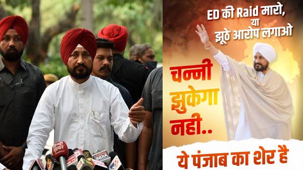 चंडीगढ़, 5 फरवरी 2022। पंजाब विधानसभ चुनाव के मद्देनज़र सभी सियासी पार्टियां विभिन्न तरीकों से चुनाव प्रचार कर रही हैं। इसी कड़ी में यूथ कांग्रेस ने सीएम चन्नी का फिल्मी अंदाज़ पोस्टर शेयर किया जो काफ़ी तेज़ी से वायरल हो रहा है। दरअसल यूथ कांग्रेस ने अपने ट्वीटर हैंडल से एक पोस्टर शेयर किया है. जिसमें सीएम चन्नी तस्वीर बनी हुई है। उसमे लिखा है की ईडी रेड मारो या झूठे आरोप लगाओ चन्नी झुकेगा नहीं... ये पंजाब का शेर है। आपकों बता दें कि सीएम चन्नी के यहां जब से ईडी की रेड पड़ी है, विपक्षी दलों के नेता लगातार उन पर हमलावर हैं।