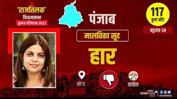 सोनू सूद ने अपनी बहन को जिताने के लिए चुनाव प्रचार भी किया था। वह मुंबई से पंजाब आए थे। हालांकि, मालविका सूद जीत नहीं पाईं। आज चुनाव परिणाम में मोगा से कांग्रेस उम्मीदवार के रूप में उन्हें हार का सामना करना पड़ा है। उनके अलावा इस सीट पर मक्खन बरजिंदर सिंह (शिअद) की भी हार हुई है।