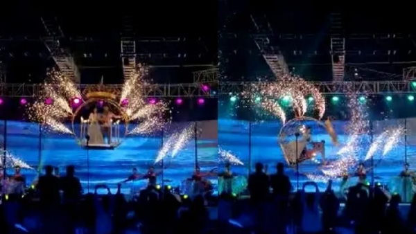 शादी समारोह में दूल्हा-दुल्हन के साथ हुए इस हादसे का वीडियो सोशल मीडिया पर वायरल हो गया है। वीडियो में साफ देखा जा सकता है कि शादी समारोह के दौरान स्टेज पर डांस और आतिशबाजी के बीच दूल्हा-दुल्हन क्रेन से एक रिंग में एंट्री कराई जाती है। अचानक से ये रिंग टूट जाता है और कपल लड़खड़ा कर स्टेज पर गिर जाता है। इसके बाद वहां मौजूद लोग चिल्लाते हुए मंच की ओर भागते हैं।