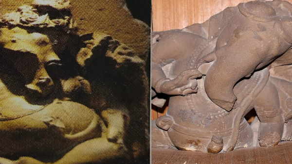 ये है उमा महेश्वर। 10वीं सदी की ये प्रतिमा कारीतलाई, जबलपुर से मिली है। बलुआ पत्थर की इस प्रतिमा में शिव चतुर्भुजी रूप में हैं। किंतु माता पार्वती के दो हाथ हैं। शिवजी के ऊपरी दाएं हाथ में त्रिशूल और बाएं में सर्प है। उमा महेश्वर कैलाश पर्वत पर विराजमान हैं। निचले हिस्से में एक ओर गणेश और दूसरी ओर कार्तिकेय हैं। कैलाश पर्वत उठाने का प्रयास करते रावण की झलक भी मूर्ति में देख सकते हैं।