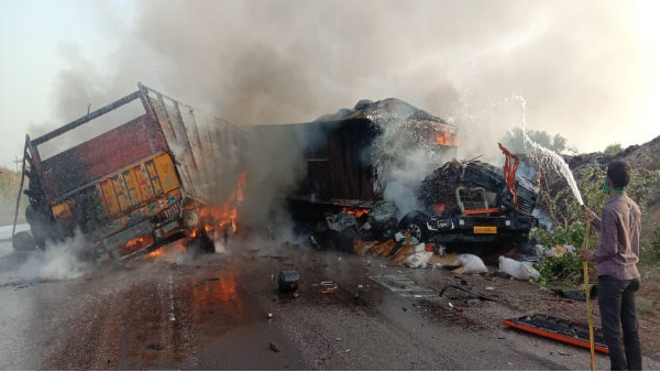 यह भिड़ंत इतनी भीषण थी कि दोनों ट्रकों के परखच्चे उड़ गए और उनमें आग लग गई। दोनों ट्रकों में सवार चार लोग उनमें जिंदा जल गए। इस हादसे में एक अन्य युवक घायल हो गया, जिसका नागौर के सरकारी अस्पताल में इलाज चल रहा है। चारों मृतकों में से दो हरियाणा के हिसार के रहने वाले थे जबकि दो शवों की अभी शिनाख्त नहीं हो पाई है।