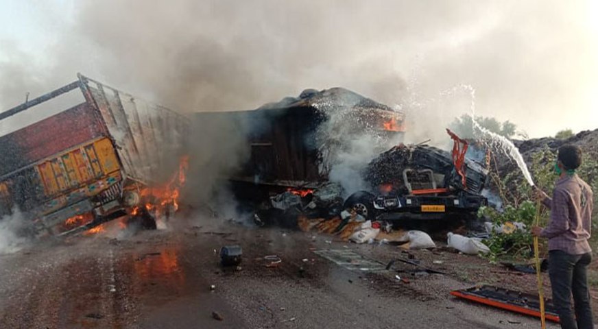 अजमेर-हरियाणा मेगा हाइवे पर लाड़नू में हादसा, दो ट्रकों की भिड़ंत के बाद 4 लोग जिंदा जले, VIDEO